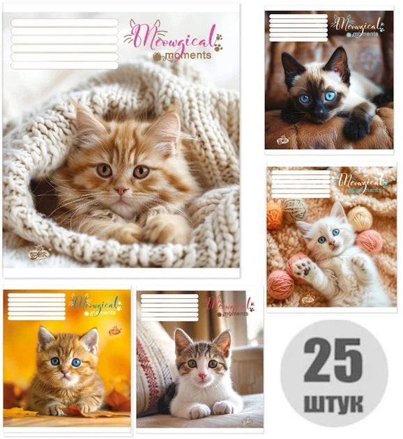 Зошит учнівський 12 аркушів клітинка №2529 Маленькі улюбленці (набір 25 штук)