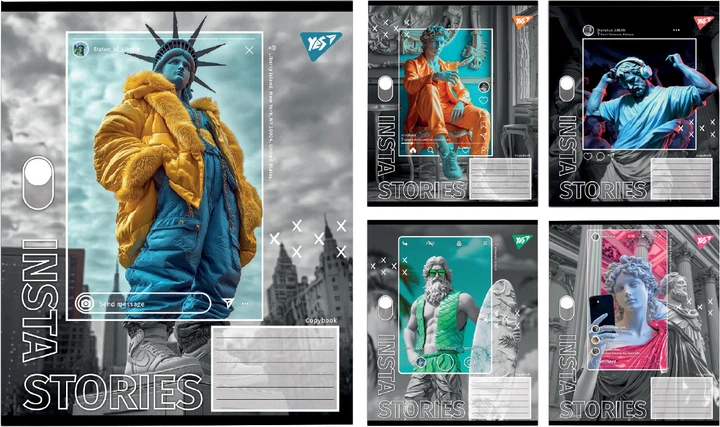 Набір зошитів учнівських загальних Yes Insta Storys А5 48 аркушів у клітинку 10 шт (767945)