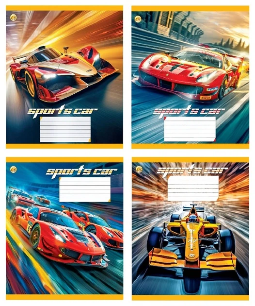 Зошити учнівські 12 аркушів клітинка Тверда Sports car, 25 шт. в упаковці