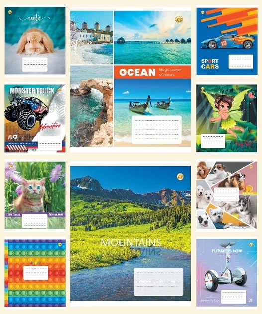 Зошити учнівські 12 аркушів коса лінія Тверда Мікс 9, 25 шт. в упаковці