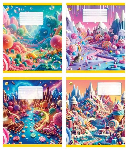 Зошити учнівські 12 аркушів коса лінія Тверда Солодощі, 25 шт. в упаковці