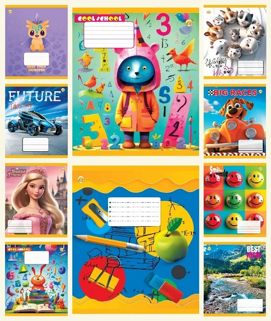 Зошити учнівські 12 аркушів клітинка Тверда Мікс 2, 25 шт. в упаковці