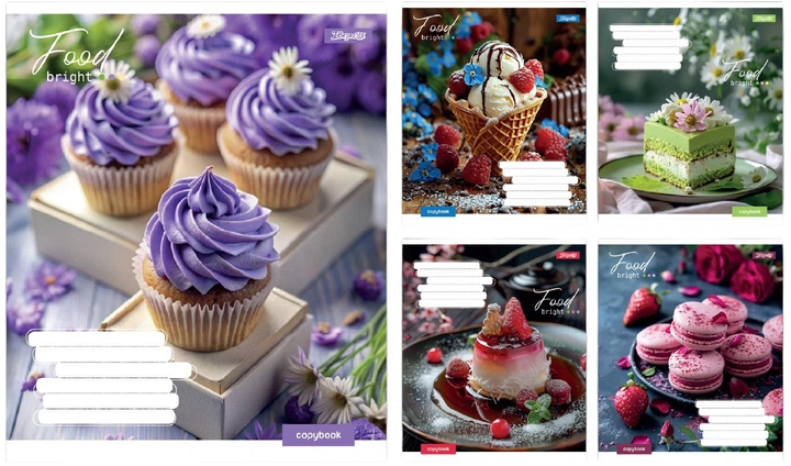 Набір зошитів учнівських загальних 1 Вересня Bright Food А5 96 аркушів у клітинку 5 шт (4823092297419)
