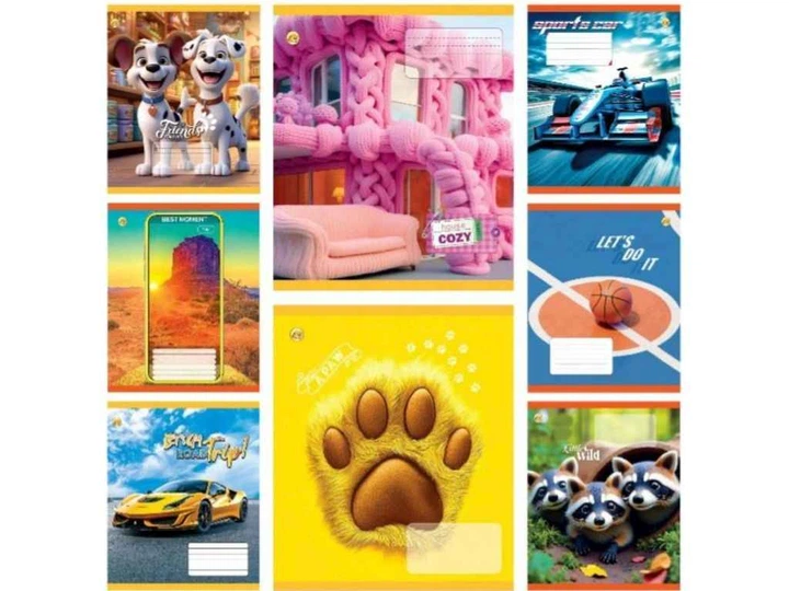 Зошит в косу лінію ТЕТРАДА 12арк. 25шт/уп Тверда Мікс 6 ТА53117