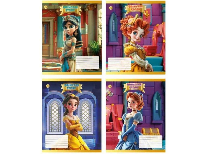 Зошит в косу лінію ТЕТРАДА 12арк. 25шт/уп Тверда Принцеси ТА53114