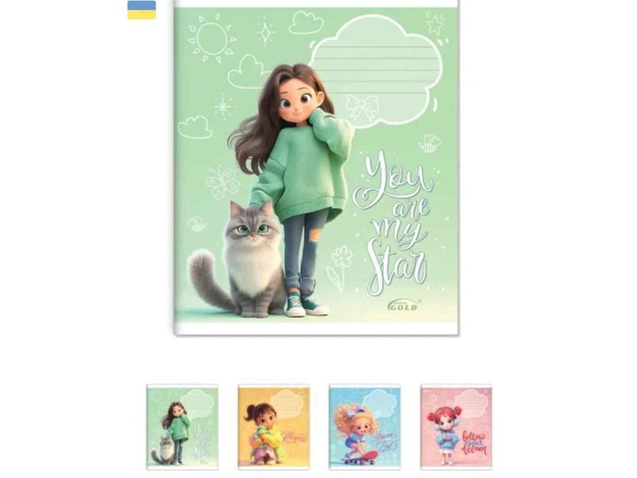 Зошит в клітинку GOLD BRISK 12арк. 25шт/уп ТВ-47 Маленька стильняшка