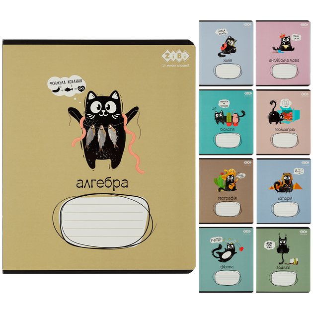 Набір предметних зошитів ZiBi Crazy Cat 48 аркушів у клітинку 8 предметів 10шт (ZB.1703-99)