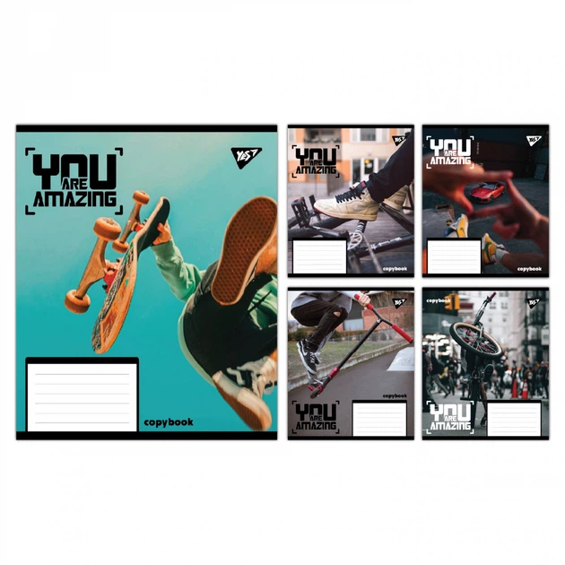 Зошити учнівські 18 аркушів клітинка Yes You are amazing, 25 шт. в упаковці