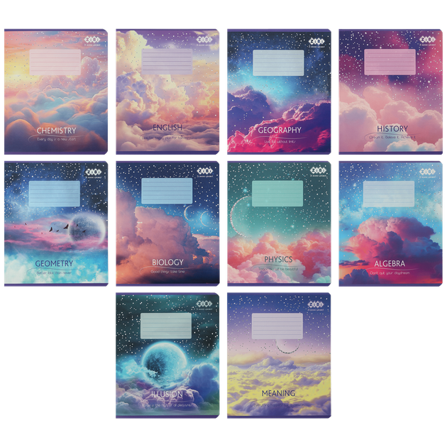 Зошит ZiBi Clouds 36 аркушів клітинка 10 зошитів 8 предметів (ZB.1732-99)