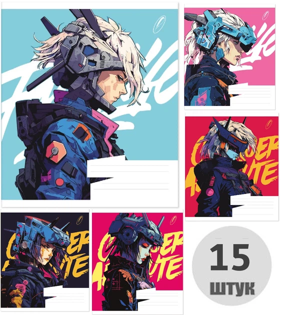 Зошит учнівський 48 аркушів клітинка ТВ-314 №0349 Кiберпанк (набір 15 штук)