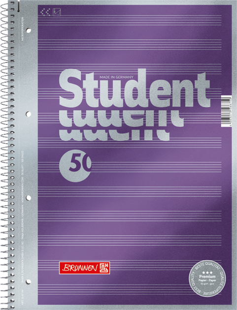 Зошит коледж-блок Brunnen А4 на спіралі нотна 50 аркушів 90 г/м2 обкладинка бузковий металік