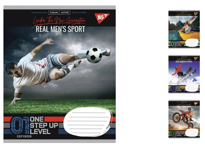Зошити учнівські 24 аркуша клітинка. YES Real sport, 20 шт. в упаковці
