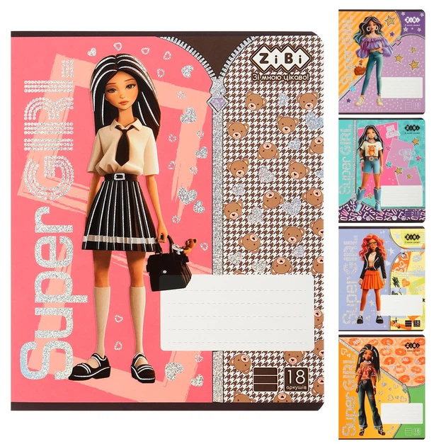 Зошити учнівські 18 аркушів лінія KIDS LINE SUPER GIRL, 20 шт. в упаковці