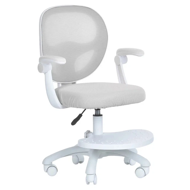Крісло дитяче з підлокітником та підніжкою блокування коліс м'яке сидіння спинка із сітки регуляція висоти Сірий (M 6056-11)