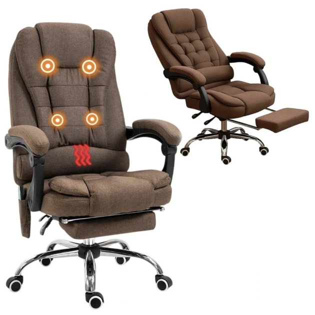 Офісне крісло до 130 кг з масажною подушкою та підставкою для ніг BOSS KO22 Premium коричневе з тканини