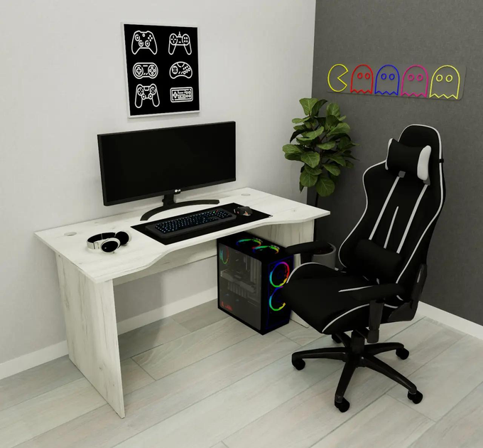 Геймерський комп'ютерний стіл, ігровий стіл з вирізом КИБ-1, стіл для ПК Крафт Білий