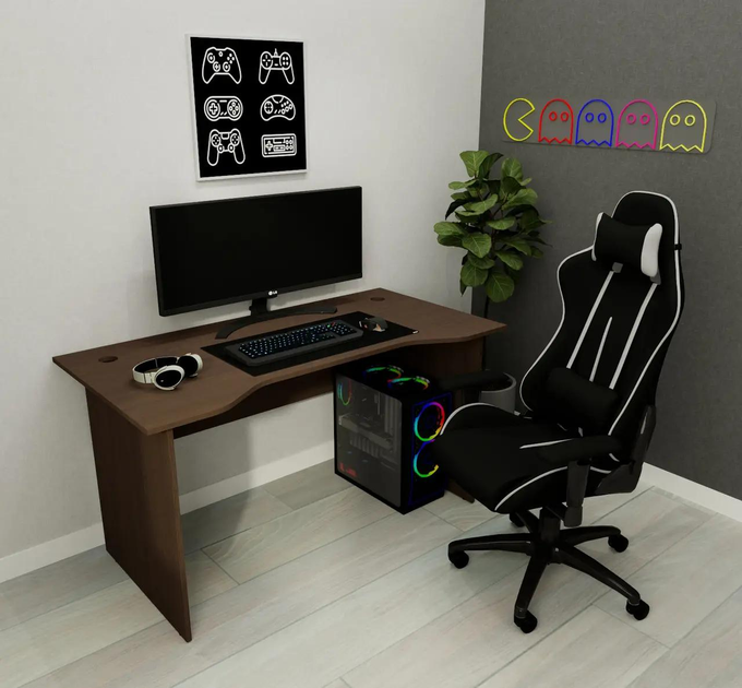 Геймерський комп'ютерний стіл, ігровий стіл з вирізом КИБ-1, стіл для ПК Венге