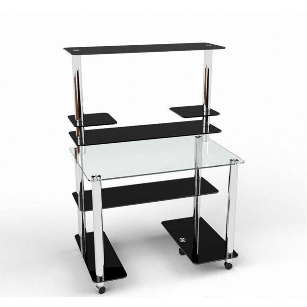 Стіл комп'ютерний скляний на коліщатках "Норидж" 800х540х1350 8/6/6 мм