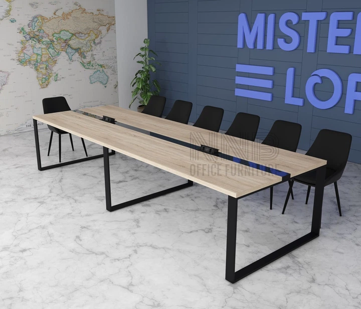 Стіл для переговорів Mister Loft Аскольд Glass Line 500*140 на 18-20 осіб Скандинавське Біле Дерево - Чорний (55860417)