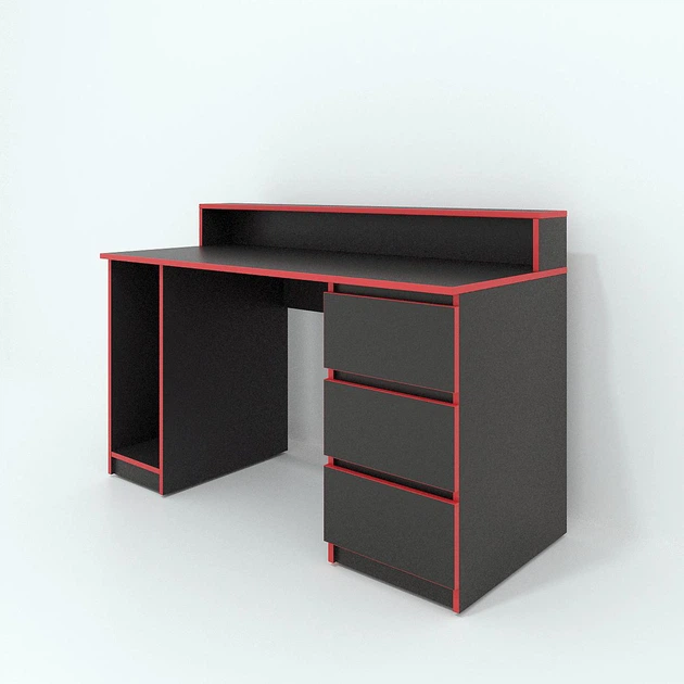 Стіл комп'ютерний ігровий Геймер з підсвічуванням Чорний з червоною крайкою 1300x750/900x600 мм (арт. SKRZ2000-060)