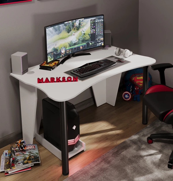 Геймерський комп'ютерний стіл " ARES" білий, ігровий