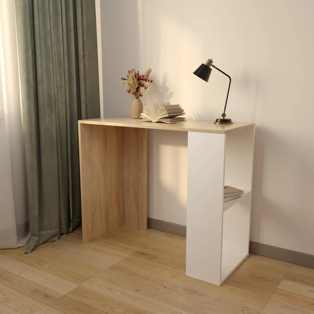Стіл комп'ютерний 90х40 см з полицями маленький робочий стіл для школяра або в офісДуб Сонома/білий