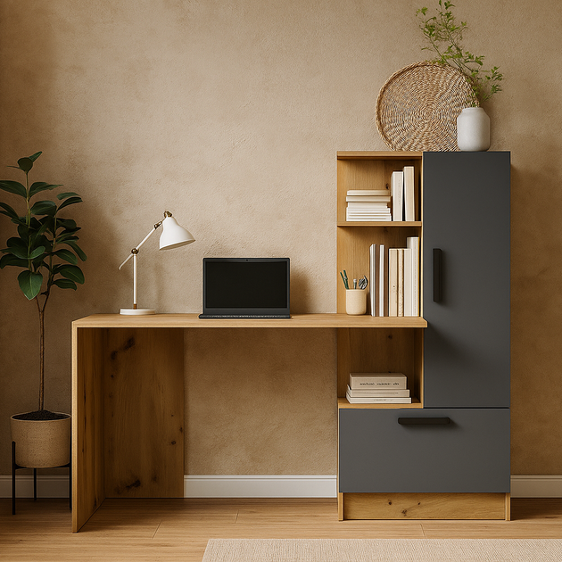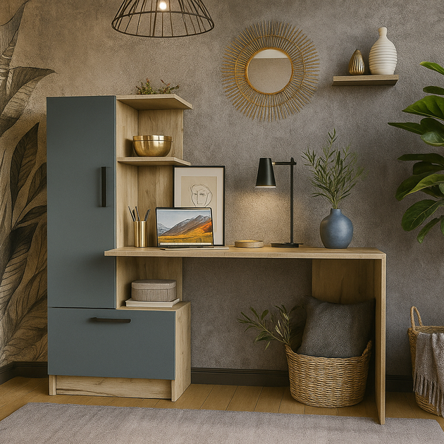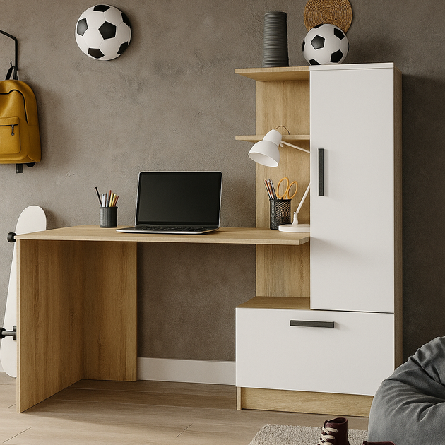 Комп'ютерний сучасний стильний письмовий стіл 150 см компактний для пк ноутбука з відкритими полицями та пеналом з дверками