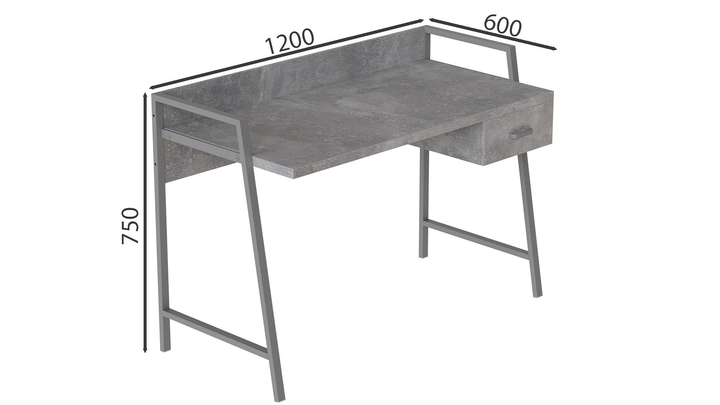 Письмовий стіл Ferrum-decor Комфорт 750x1200x600 Сірий метал ДСП Бетон 32 мм (FRD-103456)