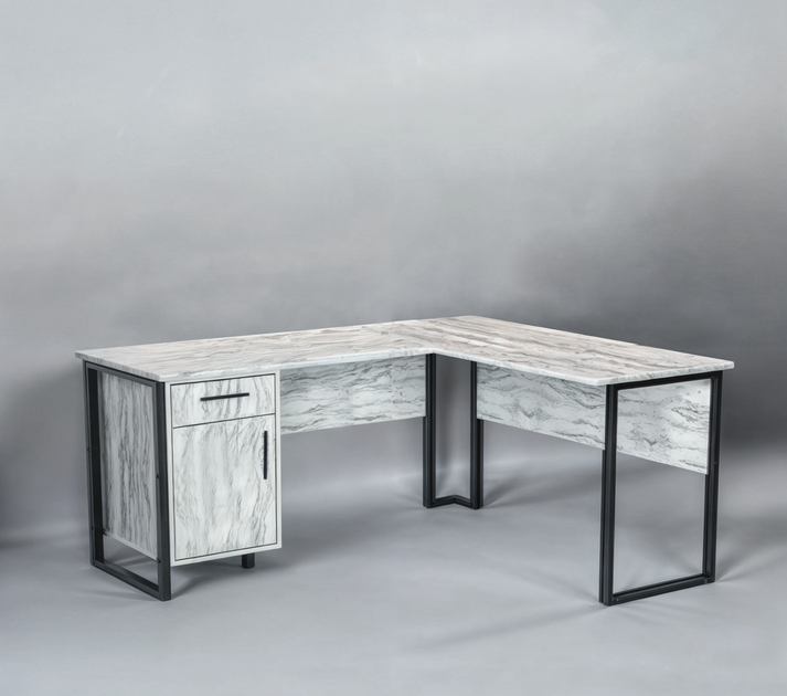 Стіл кутовий офісний Tobi Sho LOFT Iceberg СУЛА/4-1 з тумбою стільниця 18 мм, 1600х1400х750 Дуб крафт білий