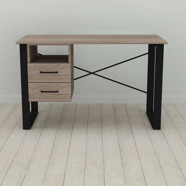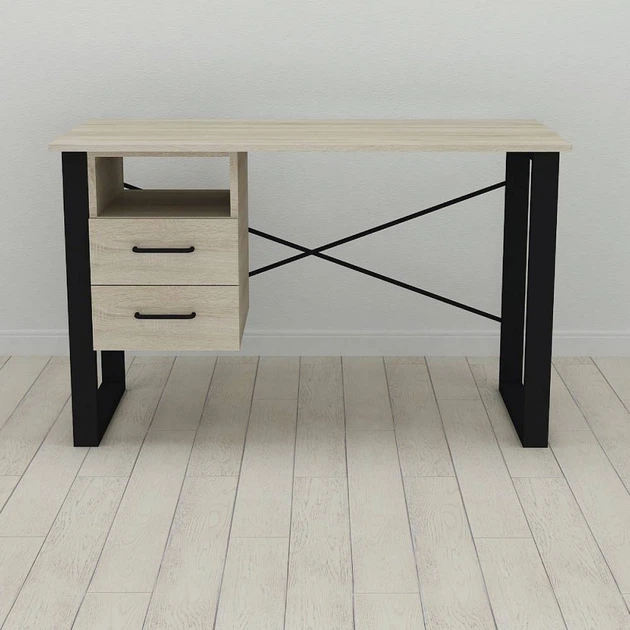 Письмовий стіл із ящиками Ferrum-decor Оскар 750x1400x600 метал Чорний ДСП Дуб Сонома 16 мм (FRD-103237)