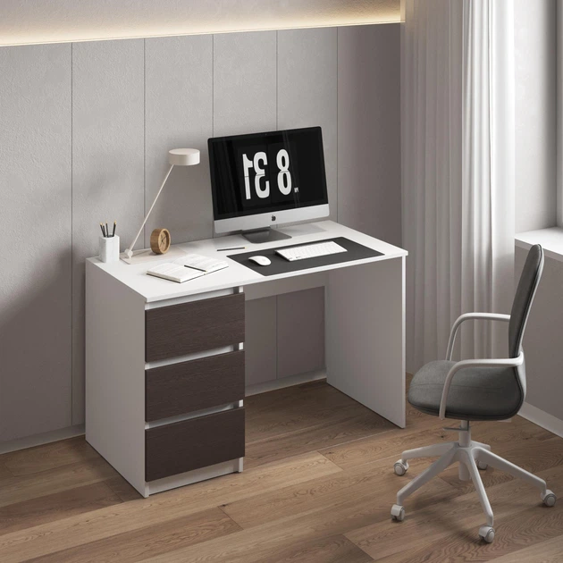 Письмовий стіл для ноутбука з 3 висувними ящиками зліва 1200x750x600 мм Білий/Венге темний (mt-224l-wh-vg)