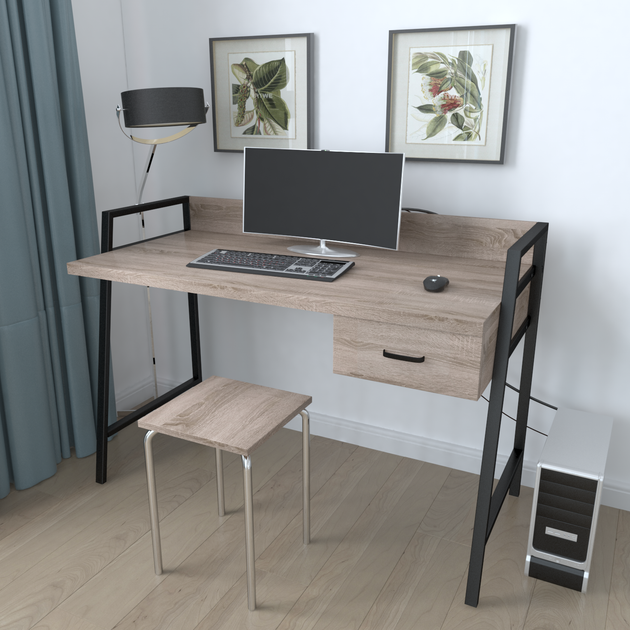 Письмовий стіл Ferrum-decor 750x1000x600 Чорний метал ДСП Дуб Сонома 32 мм (FRD-103425)