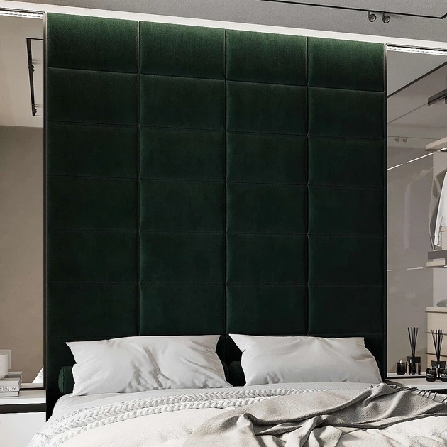 Декоративна м'яка оксамитова панель плитка модульне м'яке узголів'я ліжка Comfy Walls 20 * 50 * 4 см Темно-зелений