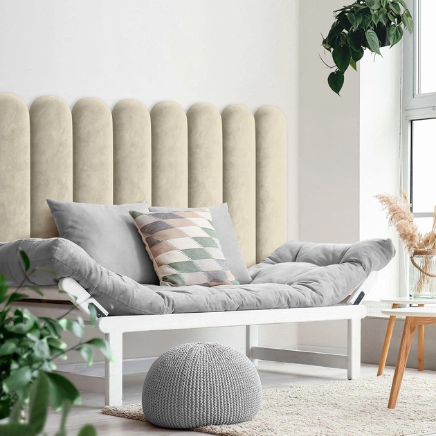 М'яка велюрова стінова панель прямокутна із закругленим краєм узголів'я ліжка з тепло та звукоізоляцією Бежева 20*60*4см