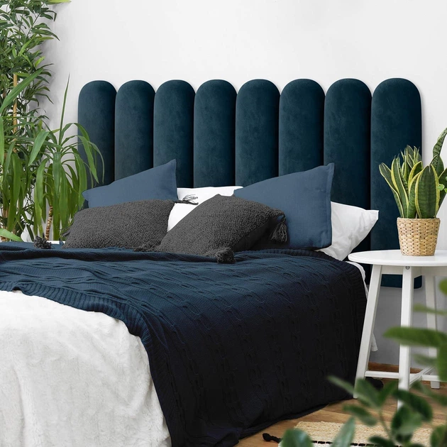 М'яка велюрова стінова панель прямокутна із закругленим краєм узголів'я ліжка з тепло та звукоізоляцією Синій 20*60*4см