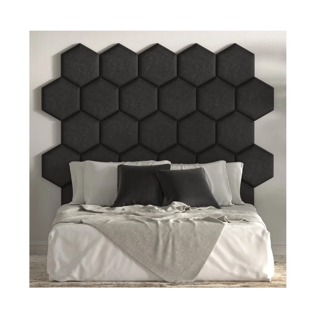 Декоративна м'яка оксамитова панель сота модульне м'яке узголів'я ліжка Comfy Walls 40х34.5х5см Чорний