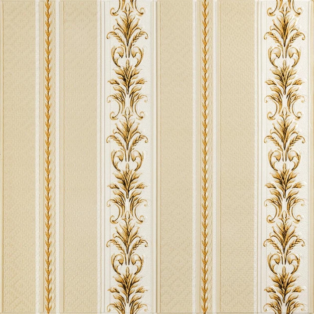 Стінова 3Д панель Бежевий візерунок орнамент під шпалери Набір 5шт. 700х700х4мм смужки абстракція декоративна самоклеюча SW-