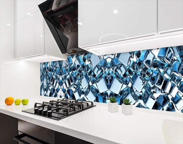 Кухонна панель жорстка ПЕТ з текстурою дзеркальними кубами, з двостороннім скотчем 62 х 205 см, 1,2 мм (ПЭТ-sab11072-5)