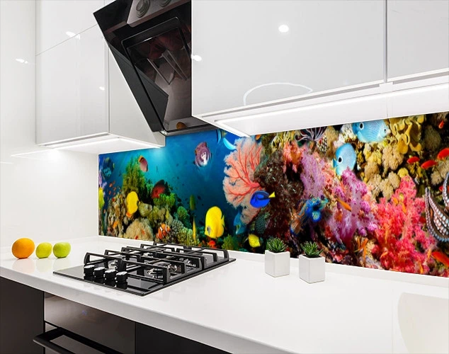 Панель на кухонний фартух жорстка з морською фауною, з двостороннім скотчем 62 х 305 см, 1,2 мм (ПЭТ-san038-5)