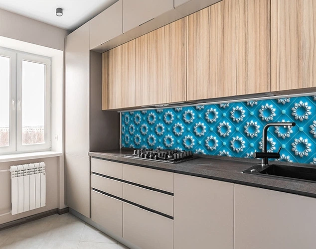 Панель на кухонний фартух під скло 3д текстура з квітами, на двосторонньому скотчі 68 х 305 см (ПЭТ3-s3d1003-6)