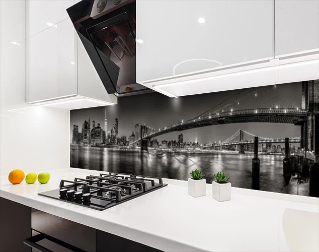 Кухонна панель жорстка ПЕТ міст Бруклінський чорно білий, з двостороннім скотчем 62 х 410 см, 1,2 мм (ПЭТ-sbr133)