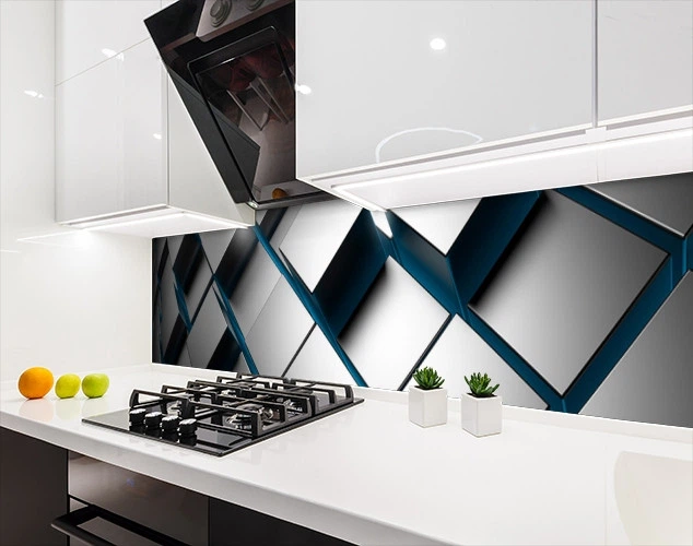 Панель на кухонний фартух жорстка з сталевими кубами 3д, з двостороннім скотчем 62 х 410 см, 1,2 мм (ПЭТ-sab147)