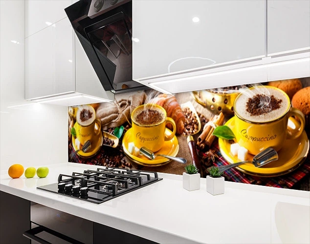 Кухонний фартух замінник скла ранкову каву з круасаном, з двостороннім скотчем 62 х 410 см, 1,2 мм (ПЭТ-sed659)