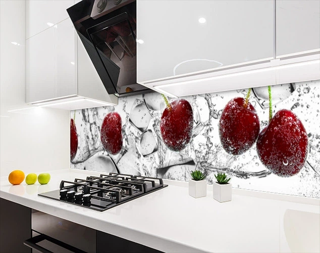 Панель на кухонний фартух жорстка вишня з кубиками люду і бульбашок, з двостороннім скотчем 62 х 410 см, 1,2 мм (ПЭТ-sed631)