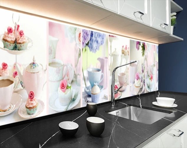 Панелі на кухонний фартух ПЕТ чайні сервізи гламурні, з двостороннім скотчем 62 х 410 см, 1,2 мм (ПЭТ-sed600)