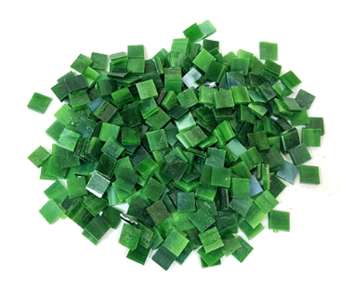 Набір шматочків мозаїки слюда форма квадрат 200 г 1*1 см 280 штук колір Зелений мікс (3626)