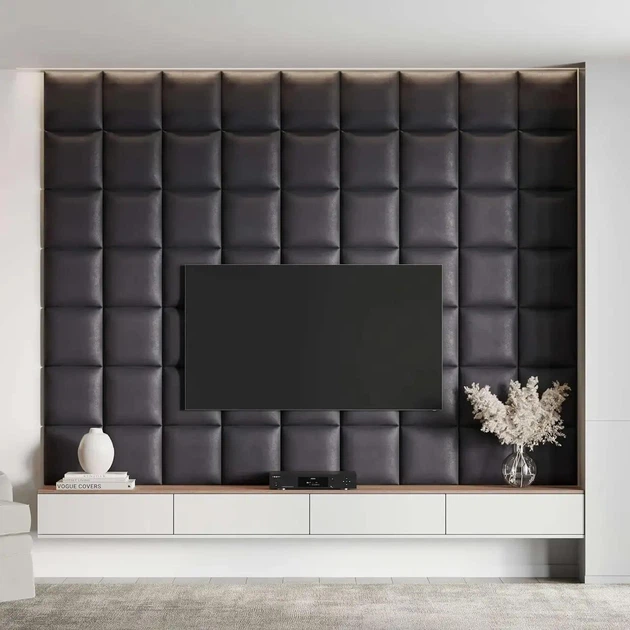 Стінова панель декоративна SOFTWALLS екошкіра 30x30x4 см Чорний (0207amz)