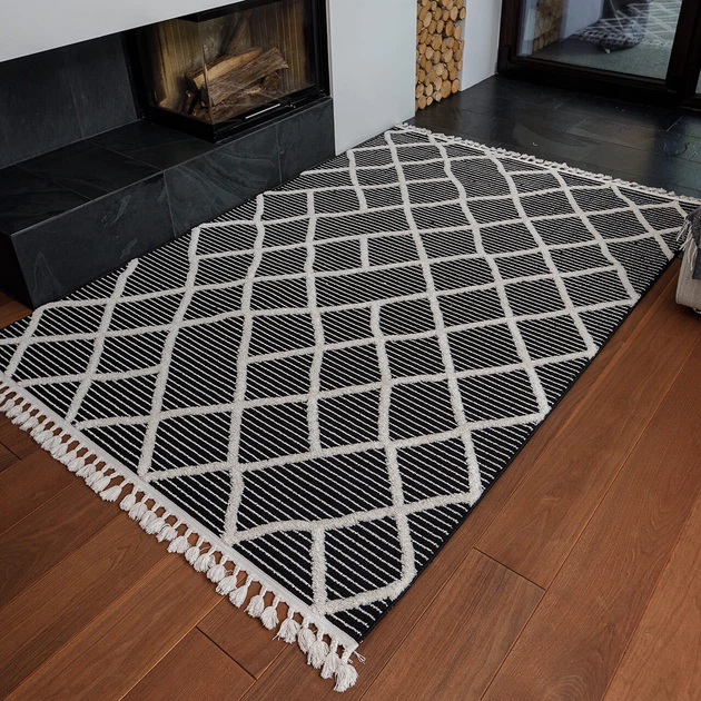 Килимок скандинавський BILBAO Y523A 0.8 x 1.5 м. Чорний з білим прямокутником