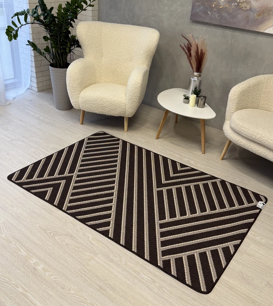 Безворсовий килим на гумовій основі Flex 1.33x1.95 м. коричневий с бежевим 19652/91