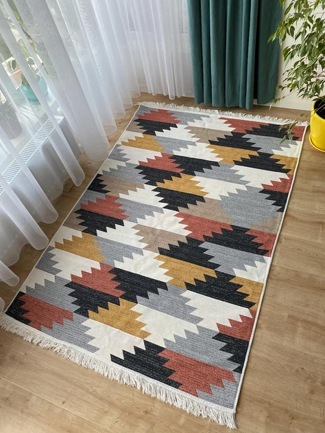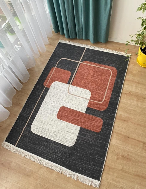 Бавовняний двосторонній килим Shana 36 Arty 120x180 см графіт та теракотовий